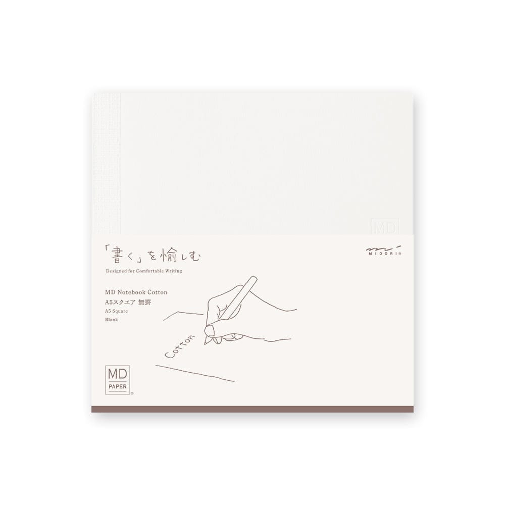 Midori MD defter: Yumuşak, pürüzsüz dokusu ve %20 pamuk hamuru bileşimiyle elde edilen zarif hissiyle büyük başarı yakalayan özel MD PAPER Cotton, MD Notebook Cotton olarak iki farklı boyutta yeniden piyasaya sürüldü.