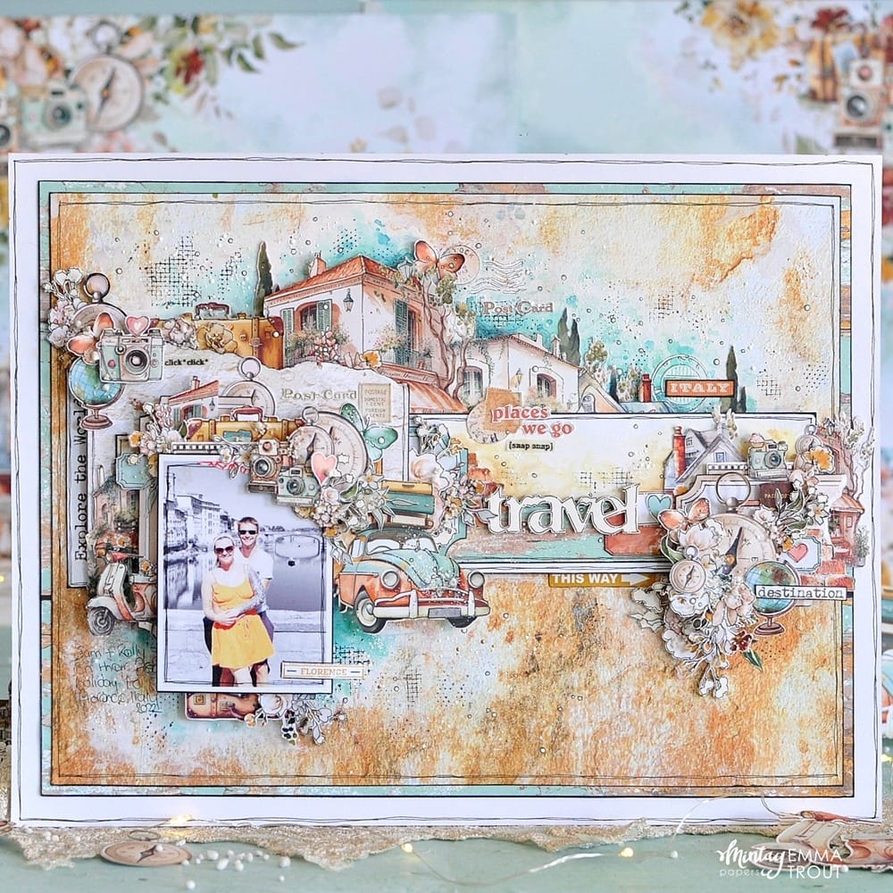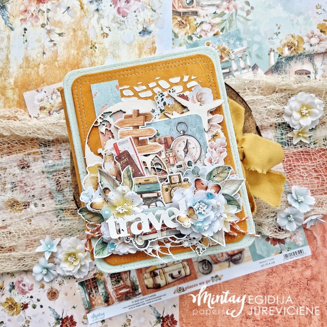 Mintay Papers Places We Go koleksiyonu, macera ve keşif duygusunu canlandıran, seyahat temalı bir hikâye sunar. Valizler, kameralar, dünya küreleri, vintage araçlar, atmosferik kafeler ve eski şehir binaları; gezilerinizi kartlarınızda, albümlerinizde ve scrapbook sayfalarınızda ölümsüzleştirmeniz için ilham verir. Paslı turuncu ve turkuaz tonlarının; sarı ve pembe dokunuşlar ile harika, organik dokularla birleşimi, yazın neşeli anılarını anlatmak için mükemmel bir zemin oluşturur.
